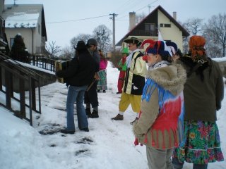 V rámci spolupráce s obcí Kladeruby u Vsetína jsme navštívili jejich tradiční ostatkovou zábavu VODĚNÍ MEDVĚDA.