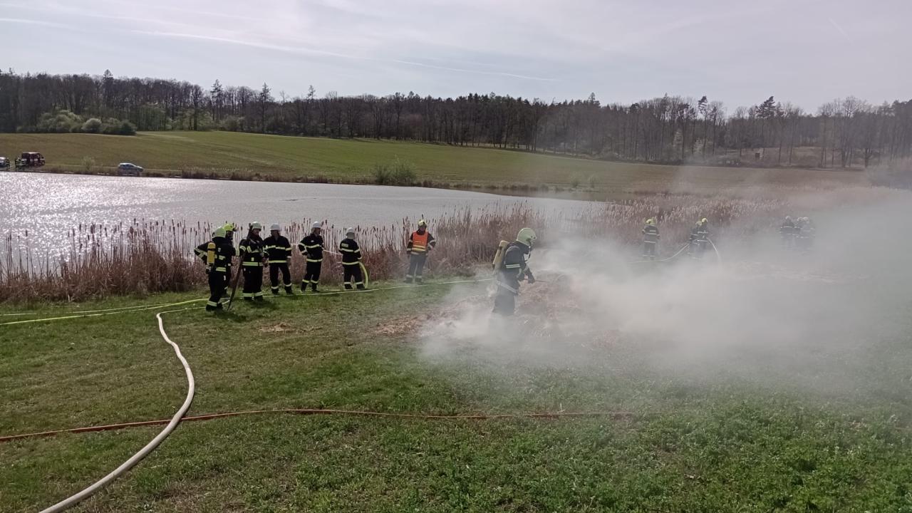 Na začátku dubna proběhlo okrskové cvičení s úkoly dálkové dopravy vody, čerpání vody plovoucími čerpadly z přírodní nádrže a hašení požáru v zadýmeném prostoru s dýchací technikou.